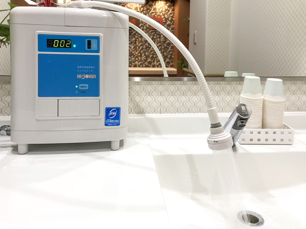 水道水を殺菌効果のある微酸性電解水に変える機器は、手指や食品などの高い殺菌効果が認められており、ホテルや介護・育児施設、農家や仕出業者など、高い衛生基準を求められる事業者に幅広く使用されています。